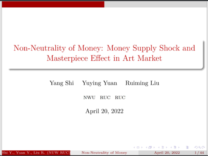 关于货币是否中性的持续争论是经济学的核心话题之一。以2008年底中国“四万亿”货币供给的外生冲击为研究背景,刘老师团队利用独有的2005-2013年中国画艺术品拍卖数据库,从艺术品市场的角度出发为货币的非中性提供证据。经过研究发现,在外生冲击出现后,已出版名作的成交价涨幅高于其他艺术品,涨幅约为16.64%。本文的贡献在于首次以艺术品市场的角度为货币的非中性提供了实证证据,进一步扩展了货币的非中性在艺术市场领域的应用。