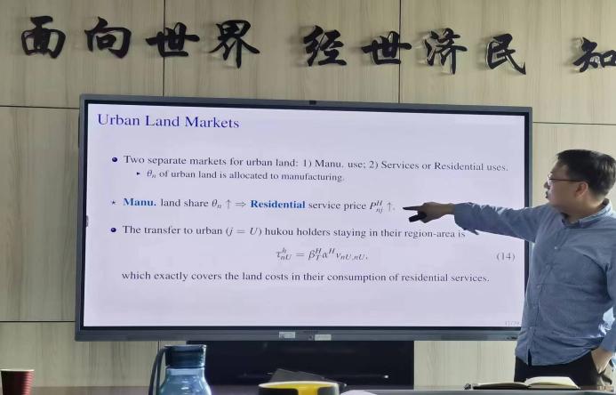 2024年5月21日,复旦大学BEAT365英国官网奚锡灿教授应BEAT365英国官网邀请,于学院11号楼308会议室开展主题为“Pro-Manufacturing Land Policies of Competing Local Governments: A Quantitative Analysis of China”的讲座。本次讲座由BEAT365英国官网副教授赵扶扬老师主持,BEAT365英国官网党委书记郭冬梅教授、赵文哲、黄乃静、胡志安、张佳梁等老师以及BEAT365英国官网研究生参与了此次讲座。