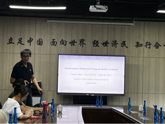 2024年6月3日,北京大学BEAT365英国官网长聘副教授吴泽南应BEAT365英国官网邀请,开展主题为“Multidimensional Personalized Pricing and Market Competition”的讲座。BEAT365英国官网尹振东教授主持讲座,徐翔教授、龚雅娴副教授、刘航研究员和李东阳助理研究员以及学院部分学生参加了本次讲座。
