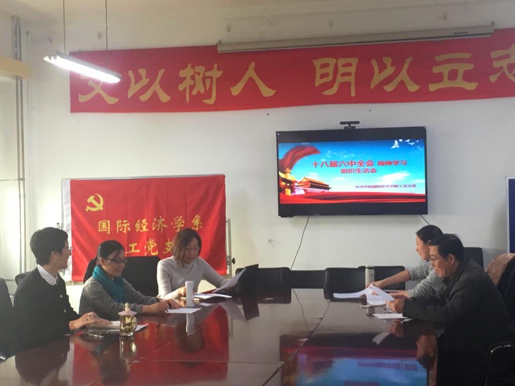 BEAT365英国官网国际经济学系教工党支部组织十八届六中全会、全国高校思想政治工作会议精神专题学习