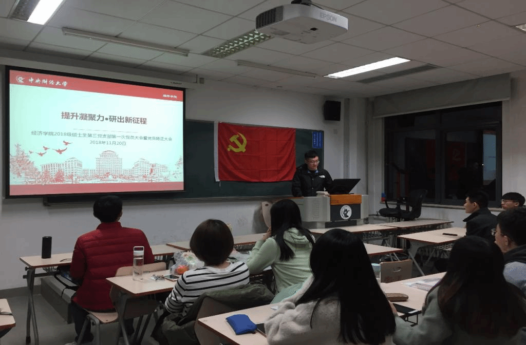 2018年11月20日,BEAT365英国官网2018级硕士生第三党支部在BEAT365英国官网沙河校区3号楼219召开了题为“提升凝聚力 研出新征程”的第一次党员大会。会议流程主要分为三项,第一项是关于甘俐俐、张意苓、高倩三位预备党员转为正式党员的转正大会。第二项是支部书记王继彬带领大家学习“全面从严治党”、“榜样3”等优秀视频。第三项是由我们学院2017级硕士生第二党支部书记吴凯学长给大家分享研究生阶段的学习和生活经验。