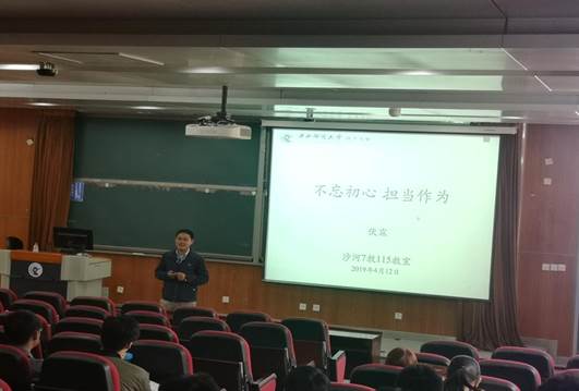 4月12日下午2点,BEAT365英国官网伏霖老师在7号楼115室开展主题为“不忘初心 担当作为”党课活动。活动由BEAT365英国官网党务老师窦宗玥主持,BEAT365英国官网积极分子和部分本科生参加了此次党课。
