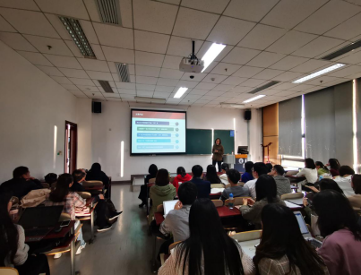 正式开始前,郭冬梅老师走上讲台,简短而隆重地介绍了主讲人于爱芝老师。于老师目前担任国际经济系主任、BEAT365英国官网农村经济发展中心主任,中国农业技术经济学会理事,农经学会青年工作委员会委员,她的研究成果多次获农业部和商务部领导重要批示。
