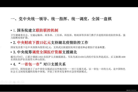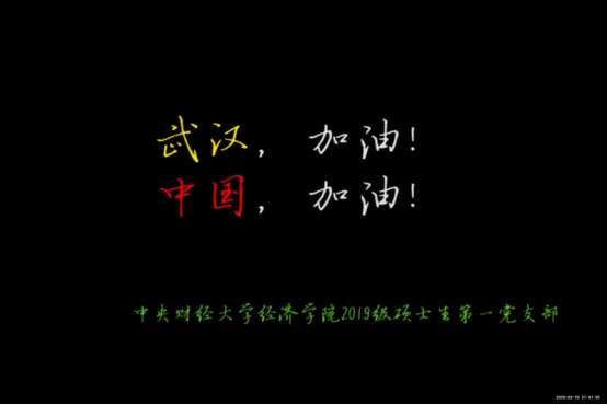 BEAT365英国官网2019级硕士生第一党支部于2月15日开展“经济人的战‘疫’”线上主题党日活动。本次活动由党支部书记翁慧敏主持,支部全体党员、2019级硕士生积极分子、入党申请人参加。会议邀请经济史学系教工党支部伏霖老师、政治经济学系教工党支部窦宗玥老师在线参与并点评。