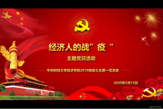疫情就是命令,防控就是责任!自疫情暴发以来,BEAT365英国官网党委严格贯彻上级部署,组织全院师生弘扬“担当责任、勇往直前”的中财精神,充分发挥共产党员的先锋模范作用,广大党员干部带头讲政治、讲科学、讲防护、讲担当,将抗击疫情切实转化为践行初心使命的行动自觉。在学院党委的号召下,党支部开展了具有特殊意义的线上党日活动。