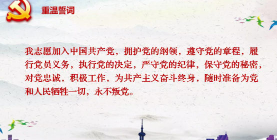活动以视频会议的形式开展。首先是党支部集体重温入党誓词环节,“入党誓词”的十二句话,句句千钧,铿锵有力,充分诠释了共产党员的责任与义务。