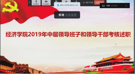在2019年度学院领导干部考核述职大会会议阶段,会议学院院长陈斌开代表领导班子述职,他回顾了2019年学院在各方面的工作进展和取得的成绩,同时提出了工作中的不足和未来改进的方向。随后,班子成员依次进行述职述廉,结合各自分管工作向大家汇报一年来的工作成效,剖析了自身的不足之处,提出了下一步的努力方向。