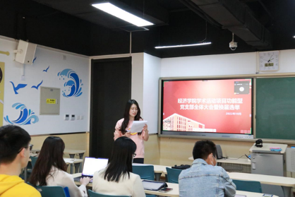 最后,学院党委副书记耿卉老师做了总结讲话。她首先代表学院党委对学术活动项目功能型党支部顺利召开新学年全员大会表示祝贺。接着,耿卉老师对党支部的功能发挥与工作方向提出要求,她强调,党支部的工作应将筑牢党建工作和推动学术科研有机融合,为助力学院培养又红又专、德才兼备、经世济民的高层次复合型人才的目标而努力。