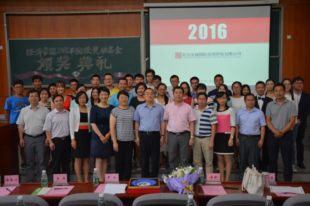 接下来,典礼进入最激动人心的颁奖环节。2016年东方金诚信用服务奖励基金共设置57个奖励名额,其中“东方金诚信用菁英教师奖”7名、“东方金诚信用奖学金”52名。由罗光董事长、李涛院长为兰日旭、韩旭明、于爱芝、邹燕等4位获奖教师代表颁奖;由李彬副院长、俞春江总监为原志听、王靖雯、方明、袁雪峥、樊妍如、徐笑森、尺列欧珠等7位获奖同学代表颁奖。