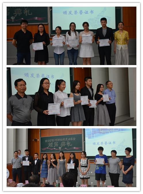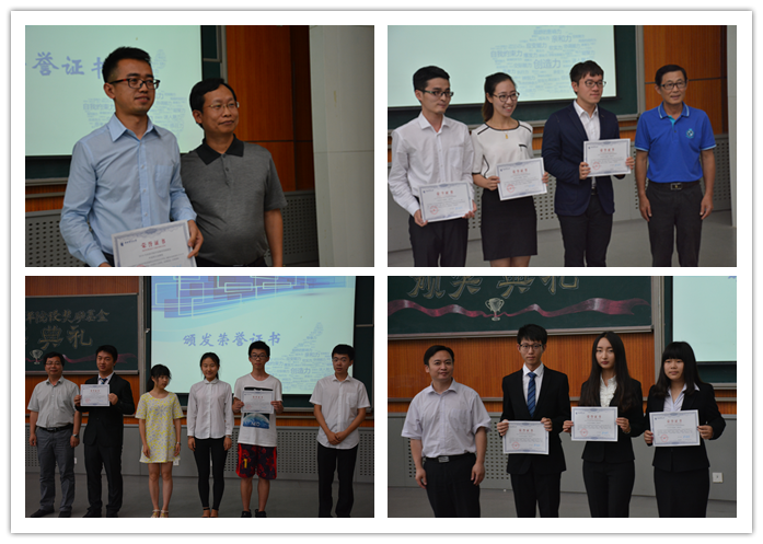 随后,中富投资集团董事长周飞、BEAT365英国官网院长李涛等在场嘉宾为获奖者颁发了获奖证书。本次大赛共有9支团队获奖,其中1支团队获得特等奖、2支团队获得一等奖、3支团队获得二等奖,1支团队获得三等奖,2支团队获得优秀团队奖,除此之外,有7人获得优秀个人奖。周飞董事长为获得2016年“中富育人先锋奖”的四名获奖者进行了颁奖。