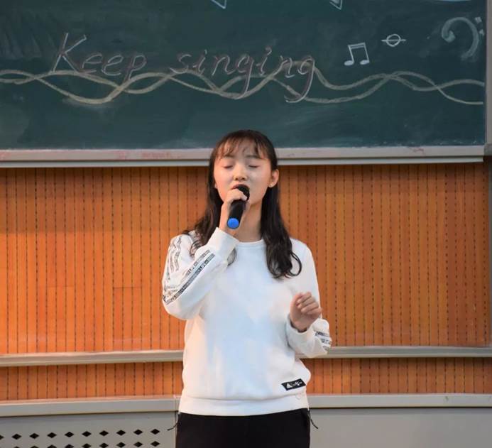 接下来,王禹辰同学的《Bad romance》个性独特、不拘一格;肖雨迪同学的《鹿港小镇》唱出了对家乡挥之不去的深情;马祖儿同学的《停格》演绎着对感情和时间的无可奈何;孙源同学的《蜂鸟》不加雕饰,以轻快的音调给每个在现实中追逐梦想的“蜂鸟”带来了拼搏的勇气;唐欢渝同学的《最长的电影》抑扬顿挫,动人心弦;苏明卓同学的《故梦》天真自然,甜美清脆;郝志明同学的《虎口脱险》让人在乍暖还寒的三月,回忆起凄迷断魂的往事;谈桐彤同学一首《烟花易冷》,浅唱低吟,让人仿佛亲临细雨纷纷的江南。最后,三位评委为大家提出了建议,并送出真挚的祝福。无论是古典优雅或是动感十足,选手们用音乐展示了他们的青春梦想,用旋律谱写着绚丽华章。