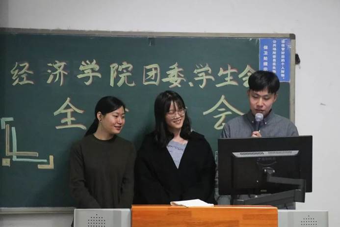 接下来是聘书颁发环节。首先由团委书记李倩老师向主席团颁发聘书,接下来新任主席团向各部门部长副部长颁发聘书,并合影留念。紧接着各部门依次汇报了工作成果、对未来工作的规划以及对新成员的期望和要求。