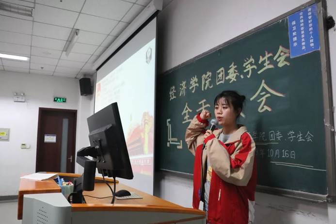 接下来学生会主席寇静恬分享了自己工作学习时的经验。首先,她建议同学们列出一个待办事项清单,以提高自己的工作效率以及工作热情。接下来她给同学们介绍了心理建设的方法,希望大家能够遇事沉着冷静,以平常心看待生活中的事情。最后,她祝愿新成员们都能肩上有风,心中有梦,在团委、学生会大家庭中茁壮成长。