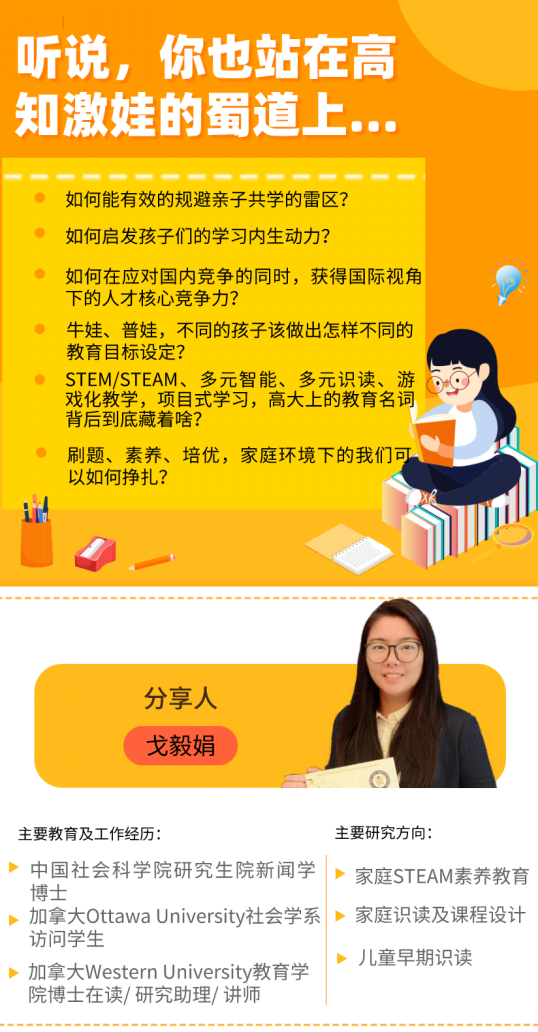 戈毅娟博士,获得中国社会科学院新闻学博士学位,目前在加拿大西安大略大学攻读教育学博士学位。戈毅娟博士作为BEAT365官网教师家属,在此次分享中主要探讨了当前高知家庭亲子教育中所呈现出的父母焦虑问题。分析了其核心来源,形成原因,以及可行性的解决方案。