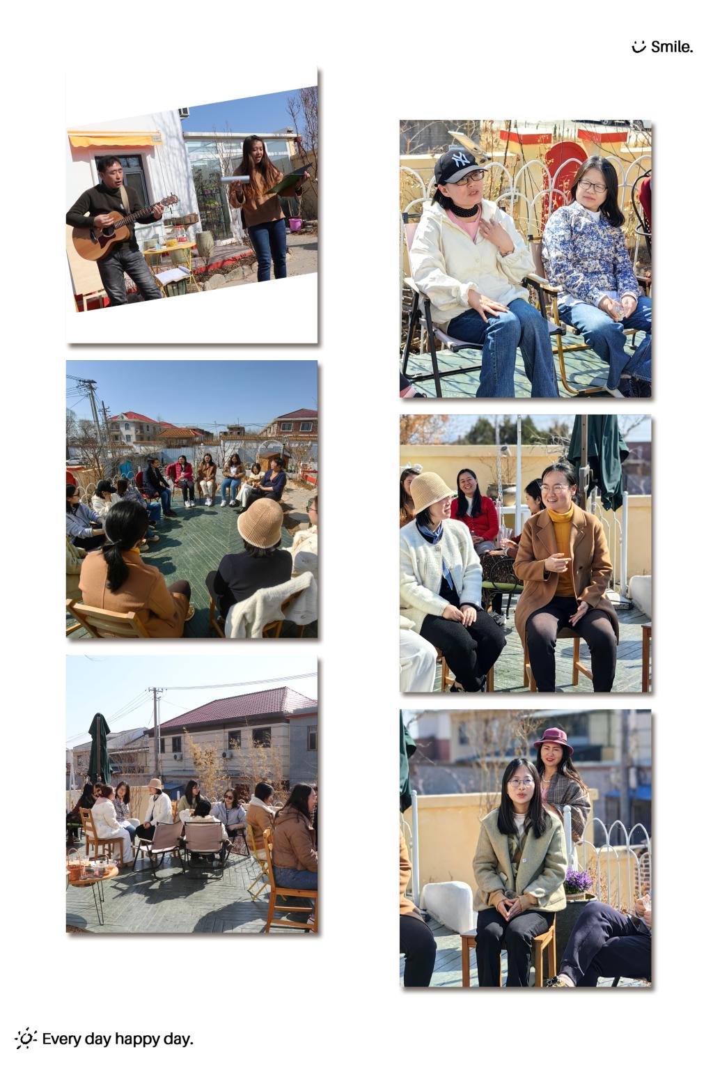 来见老师对今天的团建总结到,当我们促膝相牵、围圈而坐时,自然形成了“善”的场域;在场域支持下,大家的信任敞开,愿意把心中深藏的情感,袒露分享,“真”情在此流动;在春日、远山、庭院中,“美”的感受流淌弥散,每个人也荡漾其中,老师们共同创造了这次“真善美”的体验。