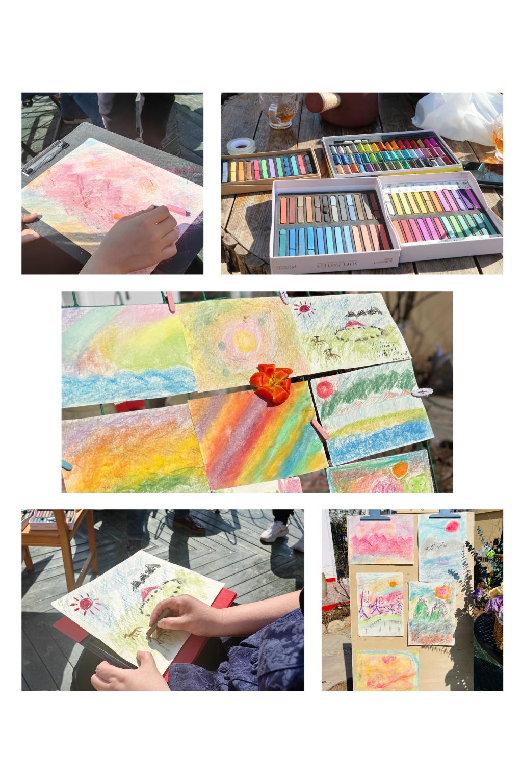 之后老师们又尝试了色粉绘画创作和插花创作,用自己喜欢的色彩,和美的天使——鲜花作为素材,描绘和塑造出自己对于美好生活的想象。老师们都化身为生命艺术家,作品呈现出千姿百态的美,或沉静或热情,或甜美或自由。老师们在这个环节后笑容更加灿烂,在自己的作品前拍照合影,像鲜花一样绽放。