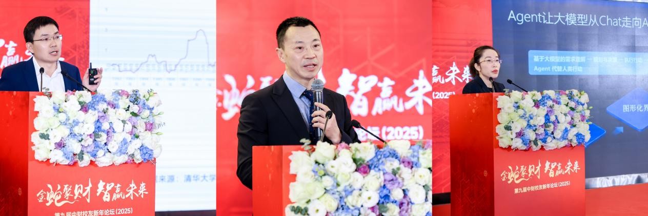 我校政府管理学院国际政治系张旗博士、信息1987级校友、魅KTV创始人吴海、智谱生态战略副总裁张巧玲以“特朗普2.0时代的对华战略与中国地缘政治形势展望”、“信心和预期的长期主义——民企营商环境的优化”、“大模型与AI时代金融新范式”为主题发表主旨演讲。