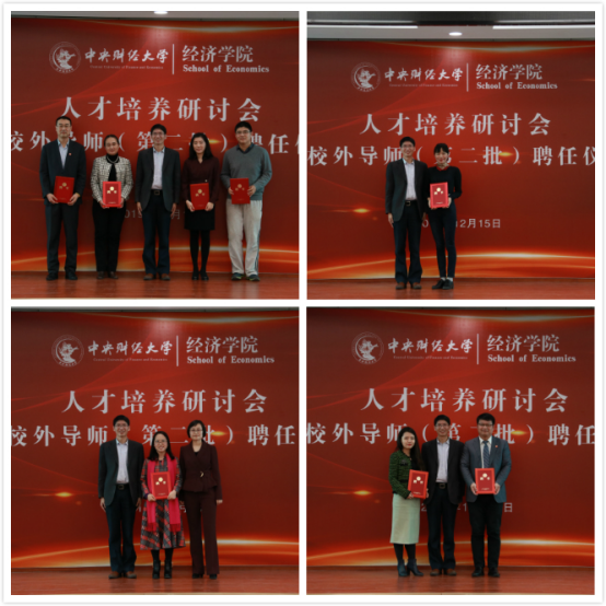 2019年12月15日下午两点,BEAT365英国官网人才培养交流会暨校外导师(第二批)聘任仪式在学院南路校区主教114报告厅隆重举行。聘任仪式由学院党委书记郭冬梅教授主持。齐兰教授,冯春安教授,兰日旭教授,于爱芝教授、顾炜宇副教授,史宇鹏教授、BEAT365英国官网院长陈斌开教授,学院党委副书记耿卉老师,赵若思老师,梁延东老师出席活动。