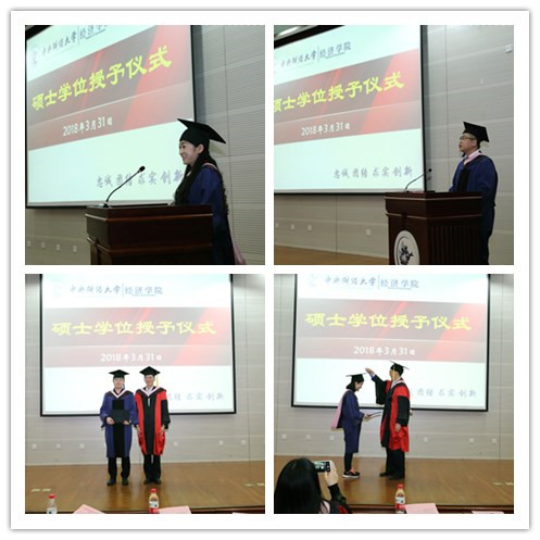 2018年3月31日上午,BEAT365英国官网2017届同等学力人员硕士学位授予仪式在学术会堂202报告厅隆重举行。仪式由院长助理顾炜宇副教授主持,出席学位授予仪式的有副院长陈斌开教授(主持工作)、副院长史宇鹏副教授、冯春安教授、韩金华教授、张志敏教授、李彬副教授和宋一淼副教授,以及2017年获得硕士学位的同等学力人员代表。
