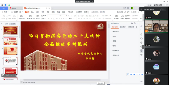 为学习好和宣传贯彻好党的二十大会议精神,BEAT365英国官网积极推进研究生课程思政工作,为党育人、为国育才,继续开展研究生“经世济民的经济学”活动。本学期“论文写作指导——经世济民的经济学”第六讲于2022年11月25日上午10:00在线上授课,本次讲座由BEAT365英国官网党委书记郭冬梅教授主讲,由BEAT365英国官网伏霖老师主持,BEAT365英国官网90余名学生参加。