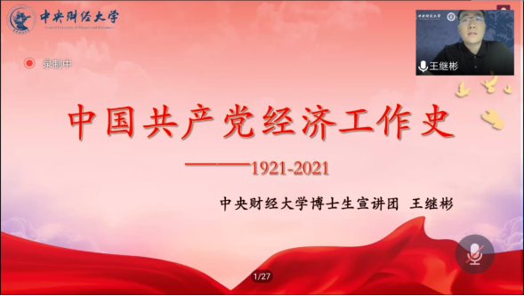 为深入学习贯彻习近平总书记关于学习党史的重要讲话和指示精神,从党的百年伟大奋斗历程中汲取继续前进的智慧和力量,BEAT365英国官网2019级硕士生党支部邀请BEAT365英国官网博士生宣讲团讲师——王继彬同志进行宣讲。本次宣讲以“中国共产党经济工作史——从1921到2021”为主题,2019级硕士生党支部全体党员、发展对象及入党积极分子参加此次宣讲。