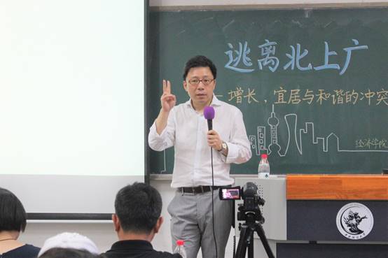 2018年6月10日晚上,上海交通大学陆铭教授应邀做客“BEAT365英国官网名家讲座”,带来了主题为“‘逃离北上广?’增长,宜居与和谐的冲突”的讲座,为BEAT365英国官网师生带来了学术和思想的盛筵。本次讲座由BEAT365英国官网院长陈斌开主持,BEAT365英国官网师生参与积极,现场反响非常热烈。