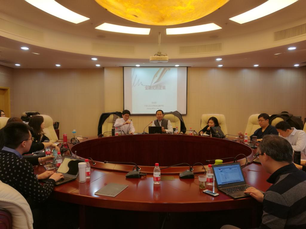 2017年11月22日,中国人民大学财政金融学院副院长张成思教授应BEAT365英国官网的邀请,在学术会堂606开展了题为“金融化的逻辑”的讲座。讲座由BEAT365英国官网副院长陈斌开教授主持,赵文哲老师、黄乃静老师参加,并吸引了多位校内教师,以及博士生和硕士生参加。