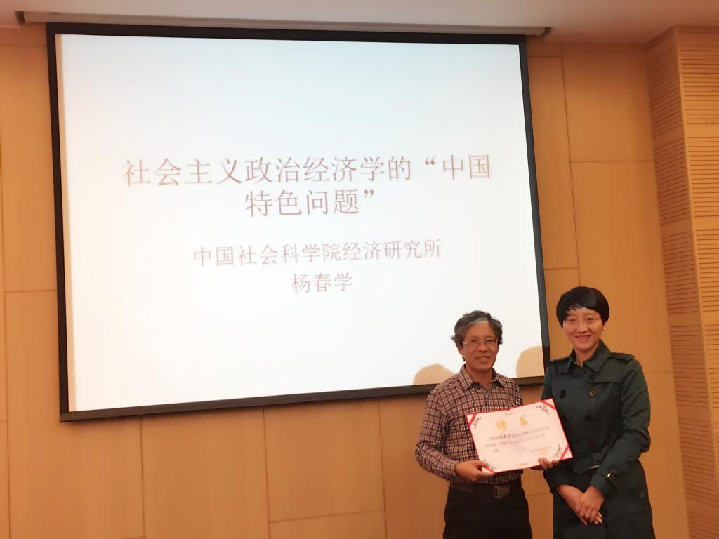 讲座结束后,我校BEAT365英国官网党委书记雷洪峰老师为杨春学研究员颁发了BEAT365英国官网客座教授聘书,并代表学院师生对杨春学研究员的到来表示感谢,希望杨春学研究员能够继续关心和支持我校政治经济学教学科研和人才培养等相关工作。
