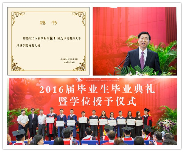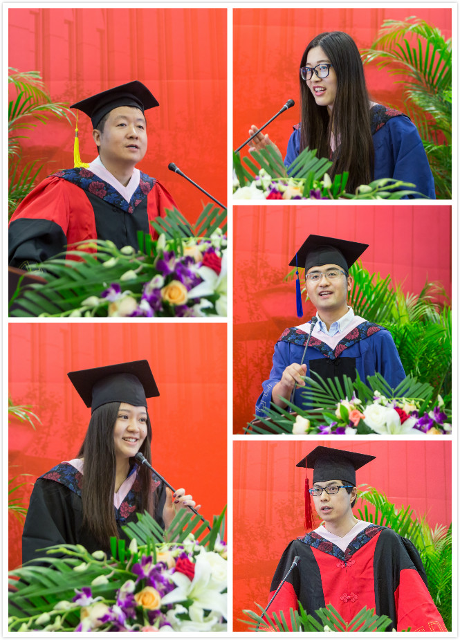 毕业,学生总有千言万语的不舍。来自2012级国民经济管理专业的李雨洁作为本科毕业生代表,回忆四年青葱岁月,有不舍、有遗憾、有难忘更有对未来的期盼,“我希望我们永远乐观勇敢,敢于也乐于接受苦难的考验;我希望以后无论发生什么,我们都能有所坚守,不忘本心;我希望我们以后不管从事什么行业,都能不只局限于眼前的世界,而是胸怀天下,经世济民”。来自2014级硕士毕业生代表杨文静回忆起求学两年中的点滴,学术上的提升、逻辑上的锻炼让她不断汲取前行的动力,“BEAT365英国官网是我们走向未来的第一张名片,我们定不负母校,做一个优秀的中财人,卓越的社会人”。2013级博士毕业生代表张朝也与大家分享了自己的三种心情:感恩、感悟与祝愿囊括了三年攻读博士学位期间的复杂情感,并抒发了与同学们“要带着中财人勇于创新的精神杨帆远行,恪守初心、拼搏进取,以优异成绩回报母校”浓厚情怀。BEAT365英国官网2008级国民经济管理专业本科生赵晓辉,2012-2014年优干保研留院工作,2014年继续攻读硕士学位,今年如期毕业。他在毕业典礼上以“与经院相遇的8年”为题,动情地与师生分享了他这8年间“问初心、问能力、问理想” 的三问与“心怀天下、心守正念、行稳致远”的三得,情真意切地表达了他对学院的感恩、对师长的感谢,以及对即将远行同窗的不舍。