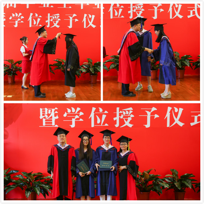 毕业典礼结束后,学院举行了隆重的学位授予仪式。毕业,是学生人生中的大事,更是学院一年一度的喜事和盛事。首先,学院学位委员会主席、院长、博士生导师李涛与硕士生导师共同完成研究生学位授予环节。在院长拨转流苏的同时,硕士生导师则为自己的学生颁发毕业证书和学位证书。每一位硕士毕业生在学位授受的庄严时刻得到了院长和导师共同的美好祝福。随后,院长为每一名本科毕业生颁发了毕业证书与学位证书。