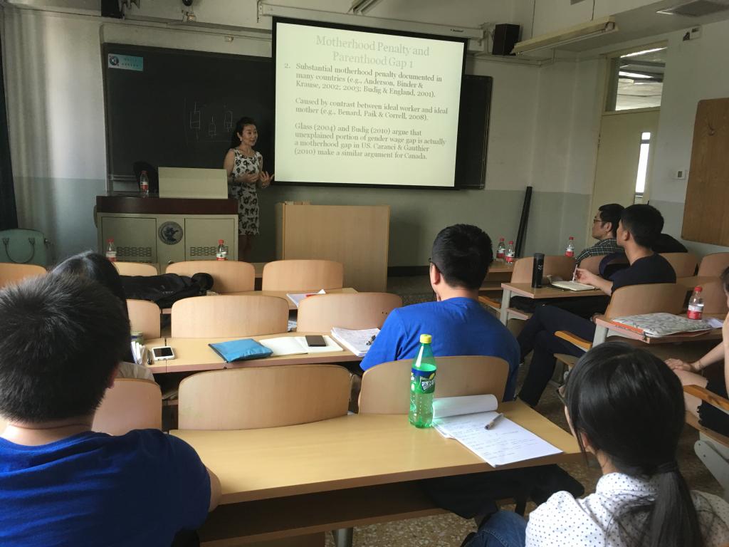 访问期间,Fei教授于5月19日下午在本部主教学楼308教室和BEAT365英国官网的师生举行了研讨会,其主题是Howcompetitive are female professionals? A tale of identity conflict。Fei教授首先对实验经济学的实验设计理论和所需要用到的计量经济学工具进行了简要的介绍,之后报告了其最新文章。该文章主要针对就业市场中女性的竞争力展开,深入的剖析了女性在劳动力市场的表现。研讨会期间,BEAT365英国官网的王海港教授、张舰教授和黄乃静教授等对该主题内容和Fei教授进行了交流和讨论。