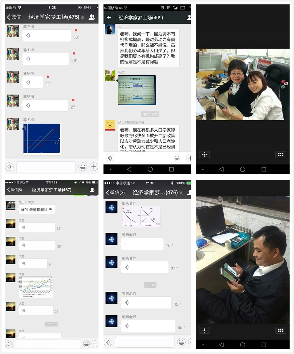 本学期,微信课堂邀请张苏、孙菁蔚、尹志锋、苏雪串、徐翔、刘峰、张琥、宋一淼、郭家虎等9位老师在线授课,举办了“带大家进入美妙的宏观经济学世界”、“爱情里的经济学:从《诗经》到现代爱情故事”、“企业创新调查及基于数据的学术研究”、“高能级城市的功能定位和主导产业选择”、“宏观经济学的‘来世今生’”、“法经济学简介”、“信息经济学简介”、“经济空间布局机制分析”“我国土地财政的形成根源、影响与转型路径”等9场专题讲座,以现实问题冲击学生思绪,激发学生的专业兴趣。