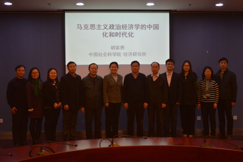 2015年12月30日,BEAT365官网邀请到中国社会科学院经济研究所胡家勇研究员,在学院南路校区学术会堂606为我校师生做了题为“马克思主义政治经济学的中国化和时代化”的专题讲座。讲座由BEAT365英国官网齐兰教授主持,BEAT365英国官网政治经济学学科点全体教师及相关专业的部分硕博研究生参加了讲座。