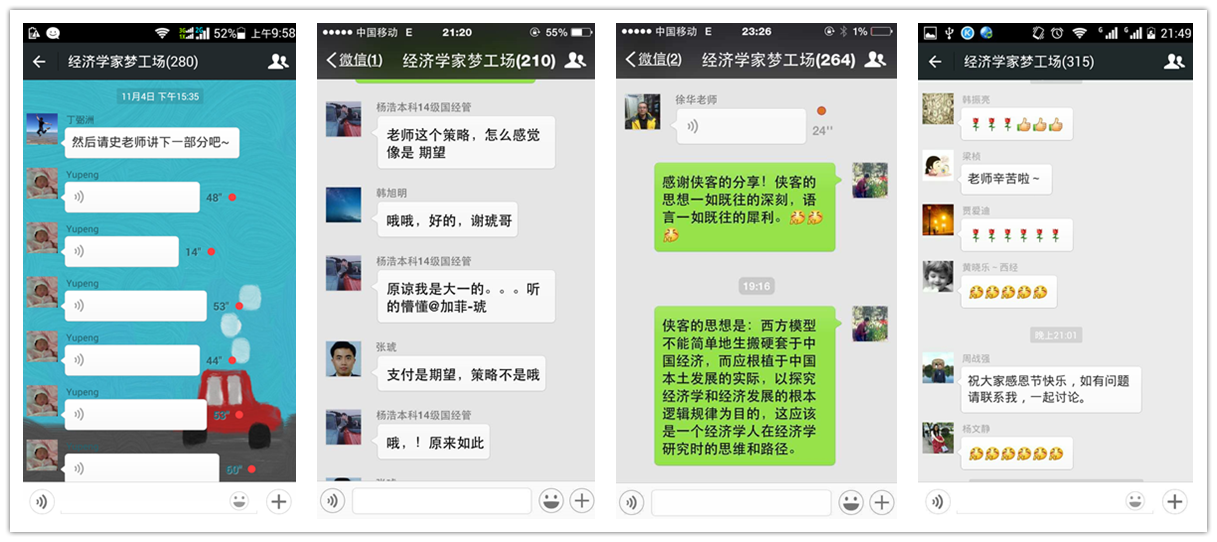 “梦工场”微课堂是“经济学家梦工场”德育示范基地创办的新型网络授课平台,旨在完善经济学在线课程的框架体系,打造应用性更强的在线教育平台。“梦工场”微课堂以可容纳500人的微信大群为课堂,以语音授课为主、文字图片传输为辅的方式,邀请学院各学科方向的优秀教师面向“粉丝”网络授课,是学院在移动互联网发展新趋势下对教育教学方法创新的新尝试。