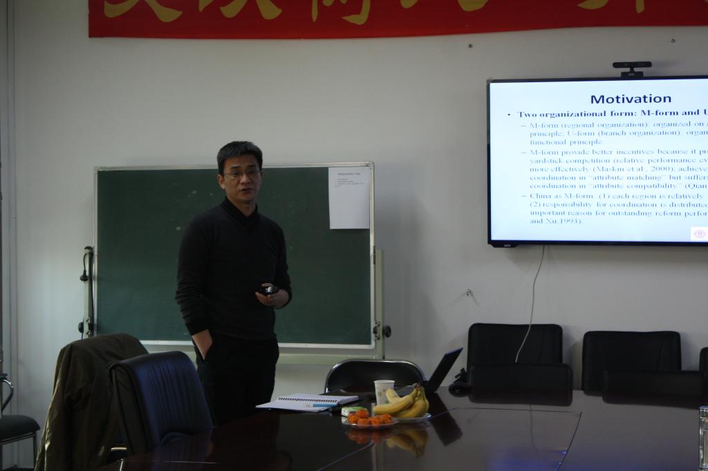 2014年12月10日,我校BEAT365英国官网邀请到中国人民大学财政金融学院院长助理、2010年教育部“新世纪优秀人才支持计划”入选人贾俊雪教授,为我校师生做了题为“Fiscaldecentralization and local economic growth in China”的专题讲座。讲座由BEAT365英国官网赵文哲老师主持,陈斌开、王海港、张川川等多位老师出席了讲座。