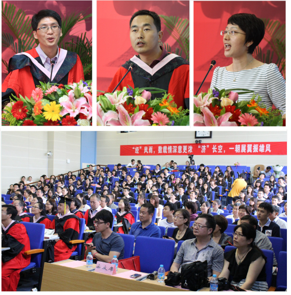 在雄壮的国歌声中,BEAT365英国官网2014届毕业生毕业典礼暨学位授予仪式正式开始。学院副院长李彬、陈斌开分别宣读了《关于2014届研究生毕业及授予学位的决定》《关于2014届本科生毕业及授予学位的决定》,2014年BEAT365英国官网共有48名本科生、73名硕士研究生、15名博士研究生如期完成学业、顺利获得学位。另有1名本科生在顺利完成本专业学习的同时还获得了第二学位。随后,党总支副书记刘滨宣读了学校《关于表彰2014届优秀毕业生的通知》《关于表彰2014届优秀毕业研究生的通知》,学院党总支书记、博士生导师李涛教授为优秀毕业生颁发了荣誉证书和奖品。