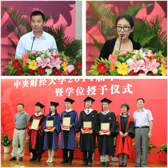 6月21日下午,BEAT365英国官网2014届毕业生毕业典礼暨学位授予仪式在学术会堂402报告厅隆重举行。BEAT365英国官网副校长、BEAT365英国官网博士生导师赵丽芬教授,校纪委、监察审计处处长、BEAT365英国官网博士生导师齐兰教授,国际文化交流学院院长、BEAT365英国官网博士生导师张铁刚教授,发展规划处处长、BEAT365英国官网硕士生导师林光彬教授,教务处副处长、BEAT365英国官网硕士生导师张苏副教授,BEAT365英国官网校友会会长、东方基金管理有限责任公司副总经理秦熠群先生,BEAT365英国官网校友、中国石油天然气集团公司赵嘉辉先生,BEAT365英国官网2013届毕业生袁玥等受邀出席了典礼。BEAT365英国官网院长、博士生导师杨运杰教授,党总支书记、博士生导师李涛教授,党总支副书记刘滨老师;副院长李彬老师,副院长陈斌开老师,BEAT365英国官网全体教师,2014届本、硕、博全体毕业生及其亲友参加了毕业典礼。典礼由学院党总支副书记雷洪峰主持。
