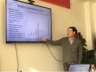 2018年12月12日,BEAT365英国官网-社心学院行为经济学系列论坛2018秋季学期第二讲在学院南路校区主教1305顺利举行。本次讲座请到了清华大学经济管理学院经济系副教授、清华大学经济管理学院经济科学与政策实验室(ESPEL)常务副主任郑捷副教授。郑老师向与会者介绍了其最新实验经济学工作论文“Lying forefficiencyor fairness”。讲座中,郑捷老师从撒谎的动机入手,介绍了最新相关实验研究文献。之后,介绍其实验设计,讨论不同情形下的独裁者博弈行为,以探究是否公平和效率偏好者在博弈内和博弈外会有不同的撒谎几率。实验结果显示,在撒谎不涉及自身利益的条件下会导致更少的倾向公平的撒谎。实验结果对于社会福利政策方面有很好的实际意义。