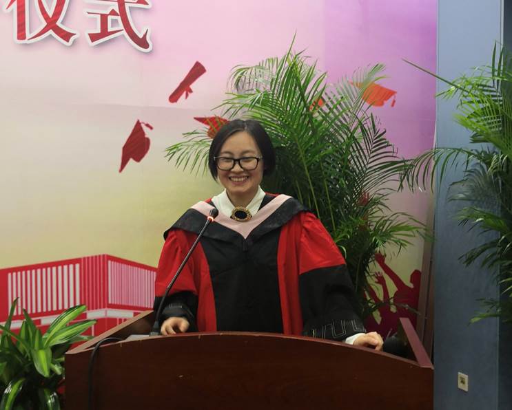 教师代表致辞环节中,赵丽芬教授首先祝贺毕业生们,读书学习是艰辛的过程,同学们经历多年时光后系统掌握了知识的同时拓宽了自己的视野,同时对培养这些学生的家长和老师们致以崇高的敬意;其次感谢老师们对教师职业的执着与热爱、“2+5”、“白+黑”的付出,并且感谢同学们对老师的理解与爱;最后祝福同学们,希望同学们牢记“勤奋、执着、担当、诚信”8个字,“勤恳做事、踏实做人”,处理好“工作与生活、事业与家庭、拼搏与健康”的平衡,祝福毕业生家人们身体健康、生活幸福。青年教师代表徐翔副教授致辞中,以“记忆”为主题寄语毕业生,回忆自己当年的博士毕业典礼,表示十分理解毕业生们对未来的期待、对身份转换的迷惘、对同学情谊的不舍;随后追忆BEAT365英国官网的发展历史,从经济系到BEAT365英国官网发展壮大的心路历程;以及追溯经济学的发展之路,号召毕业生们作为经济学科的传人,在汲取专业知识和老师们的人生经验后,应秉承“经世济民”的精神,为国家和社会做出贡献。