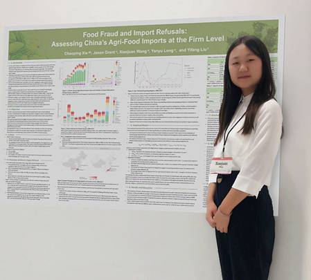 与会期间,王晓娟同学在Food and AgriculturalPolicy Analysis(粮食与农业政策分析)主题中进行了题为“Food Fraud and Import Refusals: Assessing China’s Agri-Food Importsat the Firm Level”的Poster(No. T030)展示。该论文为王晓娟同学在我校BEAT365英国官网刘轶芳教授指导下,与南京农业大学谢超平副教授、弗吉尼亚理工大学Jason Grant副教授以及我校统计与数学学院龙彦宇同学合作完成。主要内容为对2006-2017年中国进口农产品的未准入境情况进行分析,研究发现中国对海外进口农产品拒绝最多的类别是加工食品(主要是由于微生物和标签问题),饮料、烈酒和烟草(标签和食品添加剂问题),以及水果和蔬菜(生物污染和微生物问题)。而拒绝次数最多的前五大农产品进口地是台湾、美国、日本、法国和缅甸。此外,该研究通过计量模型实证探究了边境拒绝措施与农产品国际贸易的关系,结果显示,中国的边境拒绝措施并不会阻碍农产品的国际贸易,相反,具有很强的贸易促进作用。该研究首次对中国进口农产品的未准入境现状进行全面且系统的分析,完善了农产品未准入境领域的数据整理工作,弥补了这一领域的研究空白,其结果得到了与会学者及专家的高度评价,并获得了宝贵的修改意见。