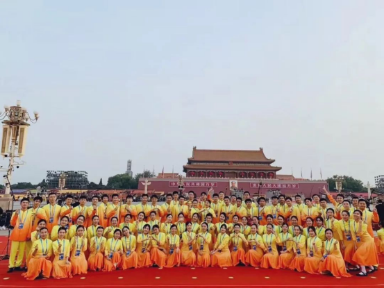 从七月十四号开始训练到十月一号演出,何其艰苦,又何其荣幸,这是一段值得纪念的日子。数不清有多少次颠倒日夜的演练,我们曾顶着夏日正午的骄阳,也吹过秋日夜晚的寒风,唱过千人无伴奏四声部合唱,走过午夜静寂的长安街。终于在国庆站在了天安门广场上,从国歌,到检阅歌曲,再到群众游行的十六首歌曲,两个多小时,我们一直伫立在天安门的对面,用深情的歌声向祖国母亲献礼,祝您70岁生日快乐!