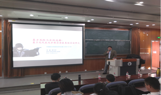 2019年12月11日,复旦大学经济学系李楠教授应BEAT365英国官网邀请,在BEAT365英国官网沙河校区3号楼222教室开展了主题为“暴力风险与合约选择——基于近代东北乡村社会匪患的考察”的讲座,本次讲座由BEAT365英国官网兰日旭教授主持,我校多名教师、博士和硕士研究生参加了讲座。