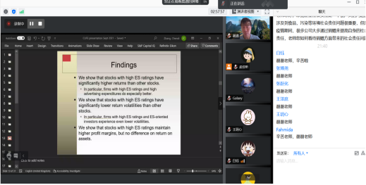 在讲课过程中,学生们围绕社会责任投资、公司股利的理论与实证问题积极提问,张教授逐一进行了详细解释。这一短期课程帮助同学们深化了相关知识,提升了研究技能,拓宽了专业视野。