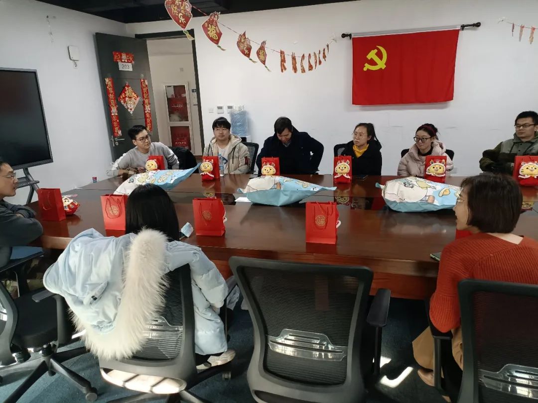 学院精心布置了活动现场,会议室门口挂起了春联,“2022新年快乐”的拉旗、“虎年大吉”和“万事如意”的纸折扇使现场年味浓浓,气氛温馨。