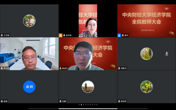 学院院长陈斌开强调,当前疫情防控形势严峻复杂,学院教师要提高政治站位,严格落实属地和学校的各项防疫要求,积极配合校院工作,及时上报信息,保持沟通畅通。同时要坚守课堂一线阵地,做好疫情常态化下的线上授课工作,勉励学生积极面对疫情下的学习和生活。在五一假期,要特别注意减少外出流动,继续加强个人防护。在全面从严治党方面,他对教师外出学术交流报备程序进行了重点强调。此外,面对严峻的就业形势,他提出,教师需要给予学生更多的关心和帮助,全力支持学院就业工作开展。