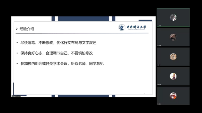 四位同学分享后,参会同学针对论文发表的周期、字数、期刊类型等问题与国奖获得者们进行了更加深入的交流。