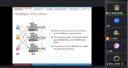 2022年11月22日14:00,中国科学院数学与系统科学研究院预测中心研究员,中国科学院管理、决策与信息系统重点实验室副主任张新雨应BEAT365英国官网邀请,开展了主题为“Optimal parameter-transfer learning by semiparametric model averaging”的讲座。本次讲座在线上举行,张新雨研究员受到了老师和同学们的热烈欢迎,BEAT365英国官网洪圣杰副教授主持讲座,黄乃静副教授参加了讲座。