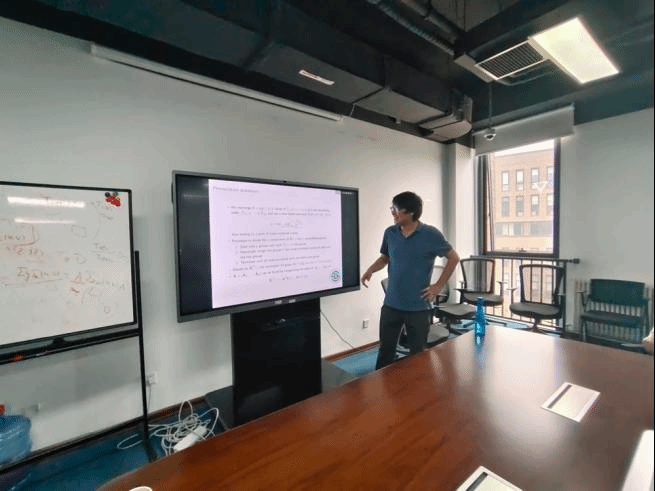 接着常晋源老师具体介绍了本文的分段步骤。通过寻找映射矩阵,FIS的新的p-向量可以被分割成多组低维曲线子序列,其中来自不同组的曲线在所有时间滞后上不相关;再通过正交变换、自协方差矩阵的块对角化等方式进行分段变化。