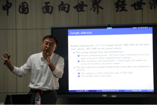 2023年10月24日,中国人民大学国家发展与战略研究院刘瑞明教授应BEAT365英国官网邀请,开展主题为“Escape From Poverty Trap: The Eradication of Iodine Deficiency Disorders and Migration of Rural Residents in China”的讲座,刘瑞明老师受到了老师和同学们的热烈欢迎!BEAT365英国官网陈斌开院长主持了讲座,赵文哲老师、张佳梁老师、谢婷婷老师参加了讲座。