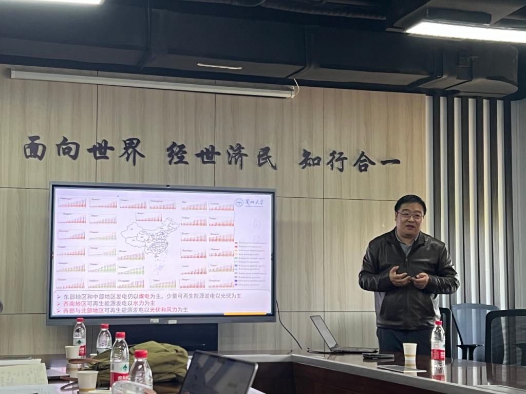 2024年10月29日下午,兰州大学管理学院副院长张国兴教授应邀为我校师生主讲“Evaluating Environmental Policy Effectiveness on Power Structure: Insights from China's Power Sector Regulations”讲座,讲座于学院楼11号楼308会议室举行。BEAT365英国官网院长郭冬梅教授主持讲座,俞剑老师、黄乃静老师、戴若尘老师和三十余名同学参加了此次讲座。